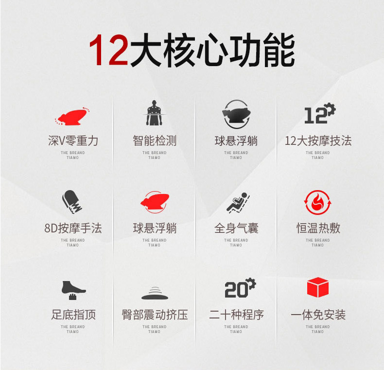 品牌源自意大利,Tiamo意大利语意:我爱你,是吉普(福建)电气有限公司旗下健康品牌之一。品牌标识在传达上紧扣品牌的核心价值:Only For Your VIP 只献给心中最重要的人。品牌针对亚洲市场,打造出“保健按摩”“运动健身”“美容护理”“物理治疗”“环境健康”五大系列产品线,力求全面覆盖家庭健康产业。 |
